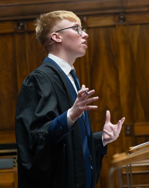 Tá an comórtas seo dírithe ar mhic léinn dlí a bhfuil Gaeilge líofa acu agus atá ag iarraidh feabhas a chur ar a gcuid scileanna abhcóideachta. Tugann sé deis dóibh cás cúirte ina iomláine a chleachtadh trí Ghaeilge