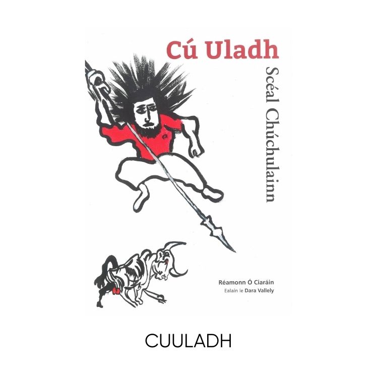Leabhar iomlán daite le clúdach crua a insíonn scéal Chúchulainn scríofa ag Réamonn Ó Ciaráin agus é maisithe go hálainn le healaín Dhara Vallely.